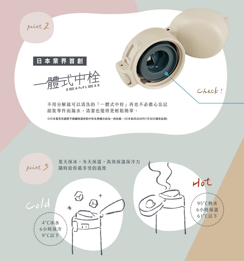 (8) 保溫效果:1小時→85℃以上,6小時→61℃以上;保冷效果:6小時→9℃以下。