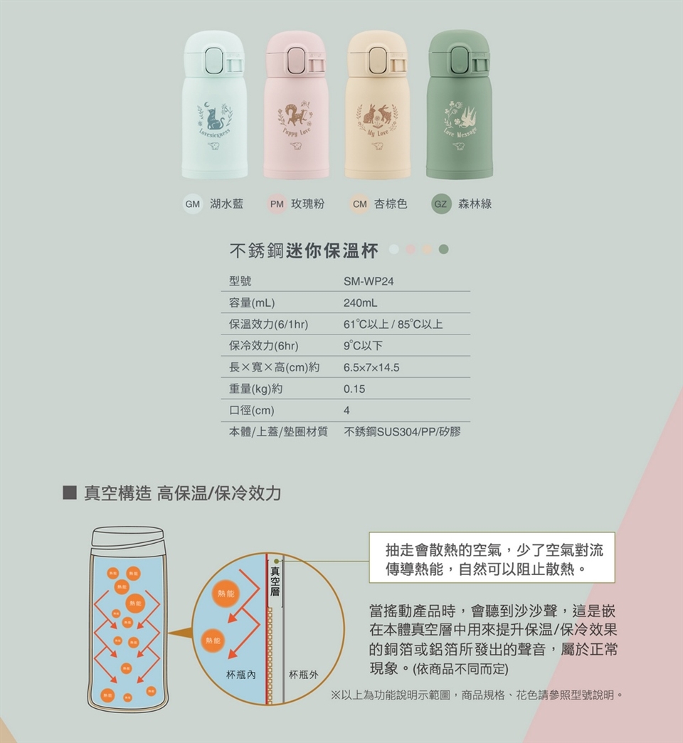 【象印】不銹鋼 一體式杯蓋 迷你保溫保冷杯-240ml (SM-WP24)