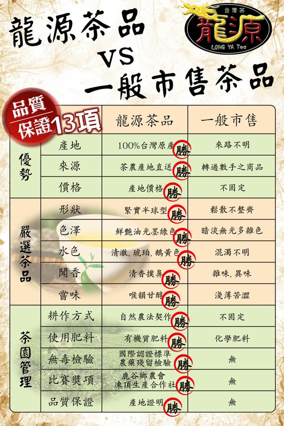1.本公司堅持100%台灣茶葉並逐批檢驗通過農藥檢測。