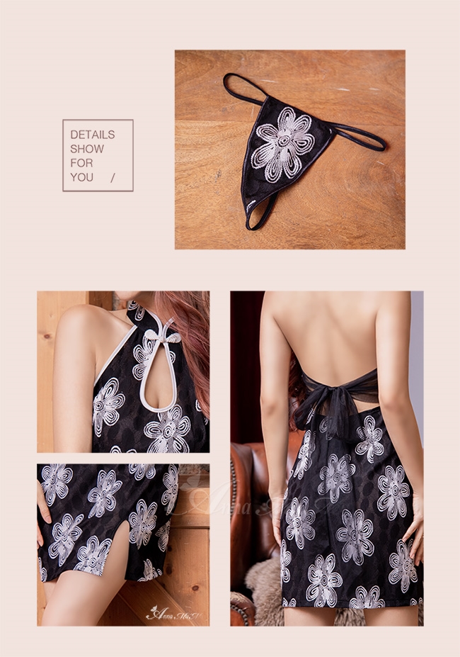 一襲典雅的黑色系旗袍角色扮演服,