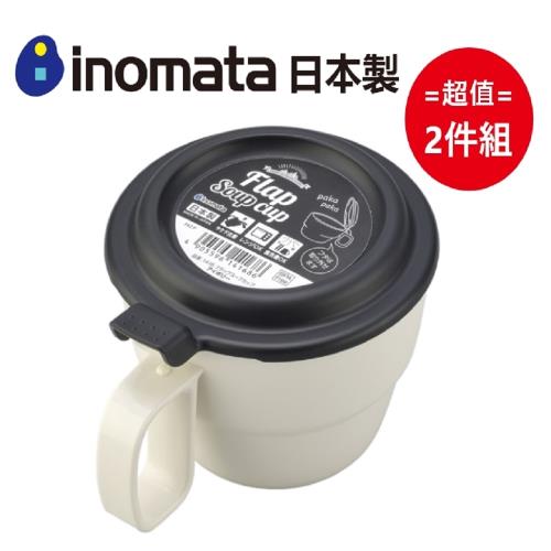 超值2件組【日本Inomata】日本製 翻蓋型湯杯 300mL (顏色隨機)