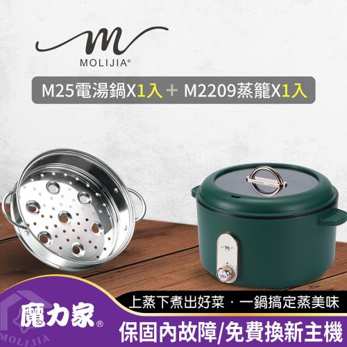 【MOLIJIA 魔力家】3L-M25多功能電火鍋3L+M2209不鏽鋼蒸籠(電湯鍋/料理鍋/美食鍋/烹飪鍋/電煮鍋/快煮鍋/調理鍋/蒸籠)