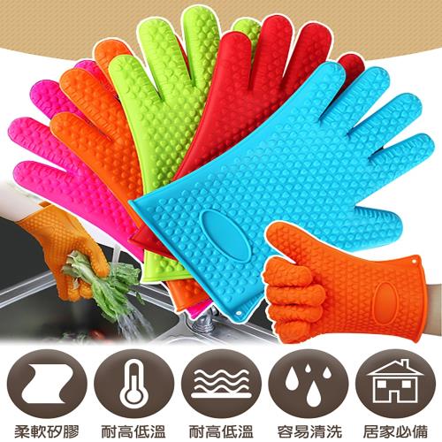 ◎ 矽膠五指隔熱手套(左右手通用)取熱鍋、微波爐取食物、烤箱拿燒烤、洗碗盤、油炸、端熱湯、冷凍室取物、清潔工作...都可用到