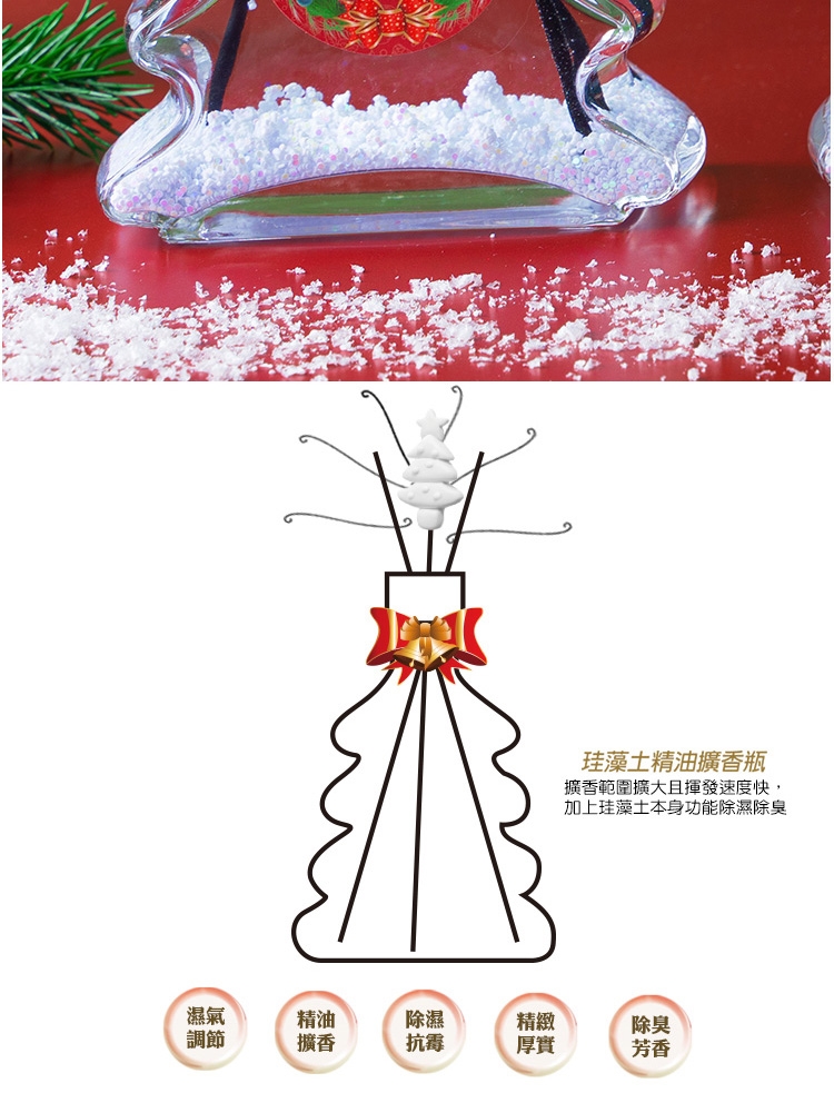 聖誕樹珪藻土搭配聖誕節的裝飾,歡樂氣氛大提升,商業空間、居家都適合使用,浪漫又溫馨,多款香氣任選喔!