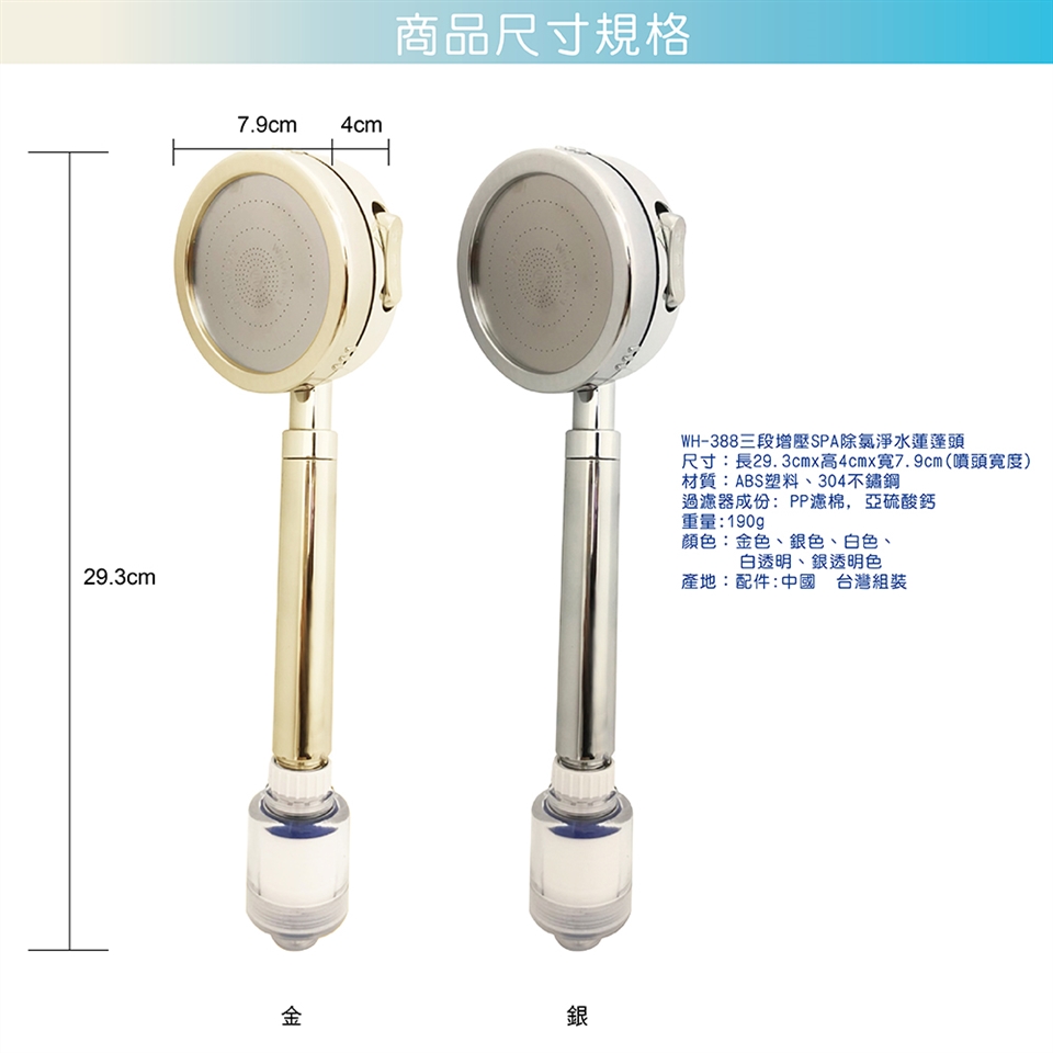 WH-388 三段增壓SPA除氯淨水蓮蓬頭