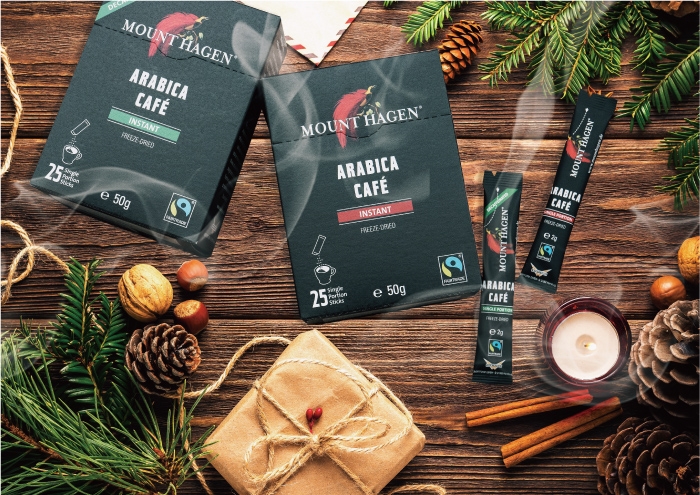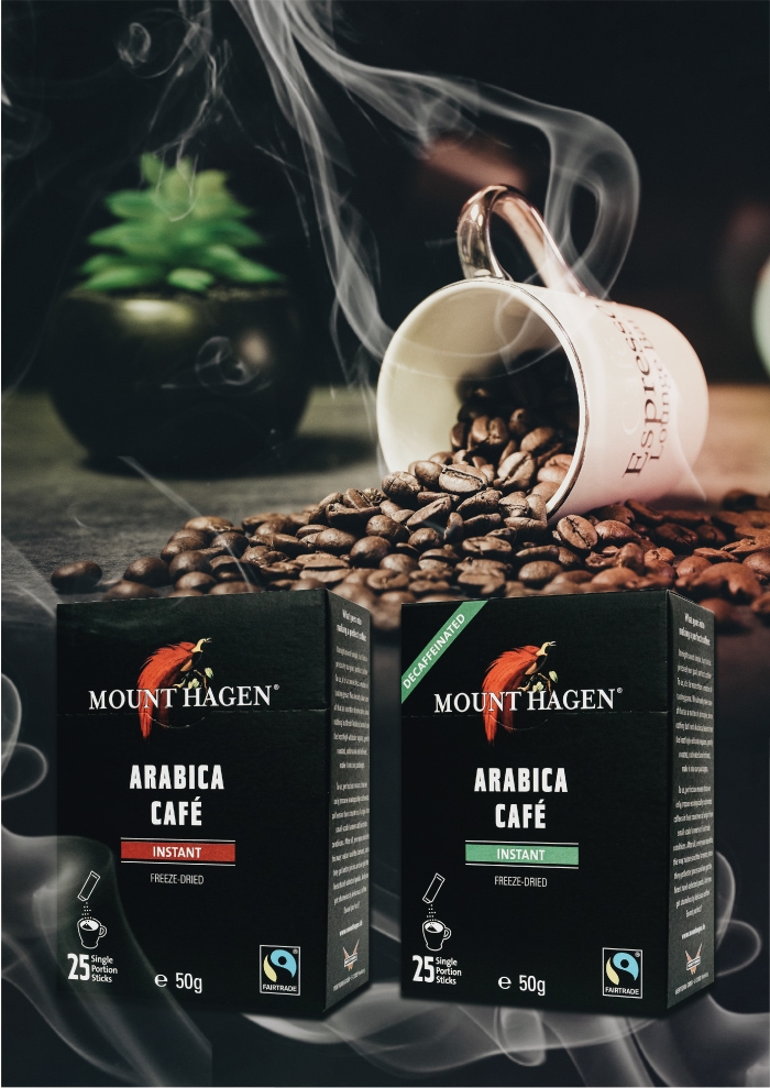 Mount Hagen公平貿易即溶咖啡經冷凍乾燥技術處理,將100%阿拉卡比咖啡豆與柔順、香味濃郁的口感融合,這些咖啡豆都是經過精心挑選,選擇只純粹從事栽種、並為他們勞工提供了安全的社會和經濟環境的種植者,這樣做,Mount Hagen可協助支持環境的永續性。