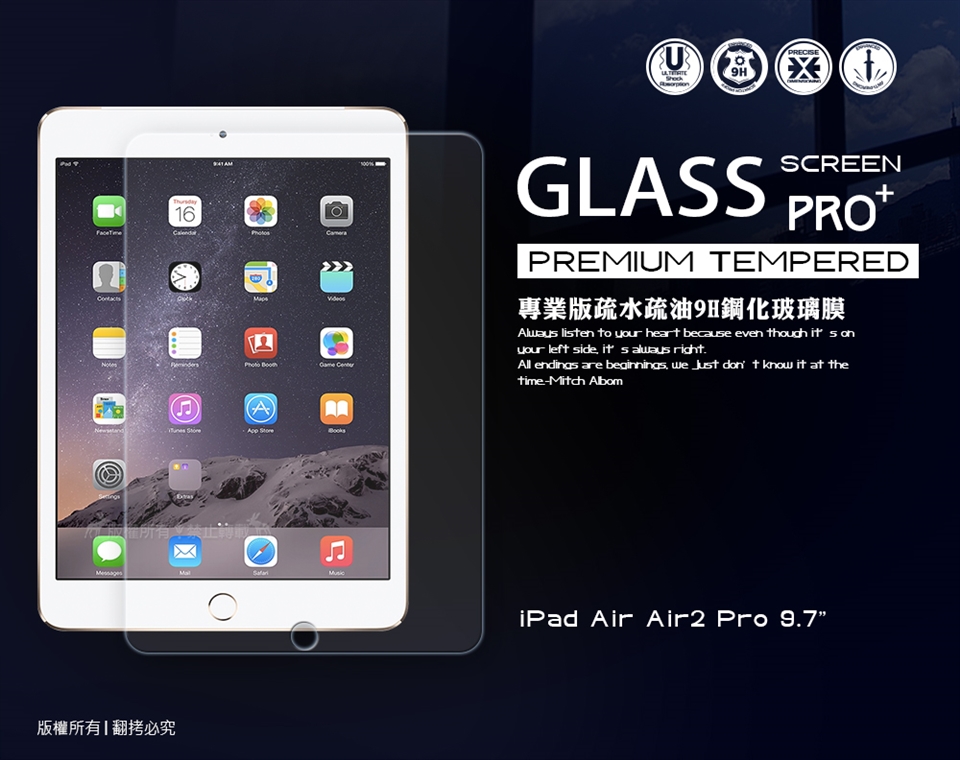 VXTRA氣囊防摔 iPad 2018/iPad Air/Air2/Pro 9.7吋 內置筆槽(暗夜綠)+9H玻璃貼(合購價)