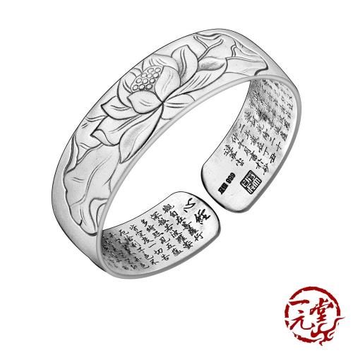 【一元堂】千足銀手鐲 純銀手鐲 - 999千足銀系列 - 999千足銀系列復古蓮花心經磨砂開口手鐲 ±55g