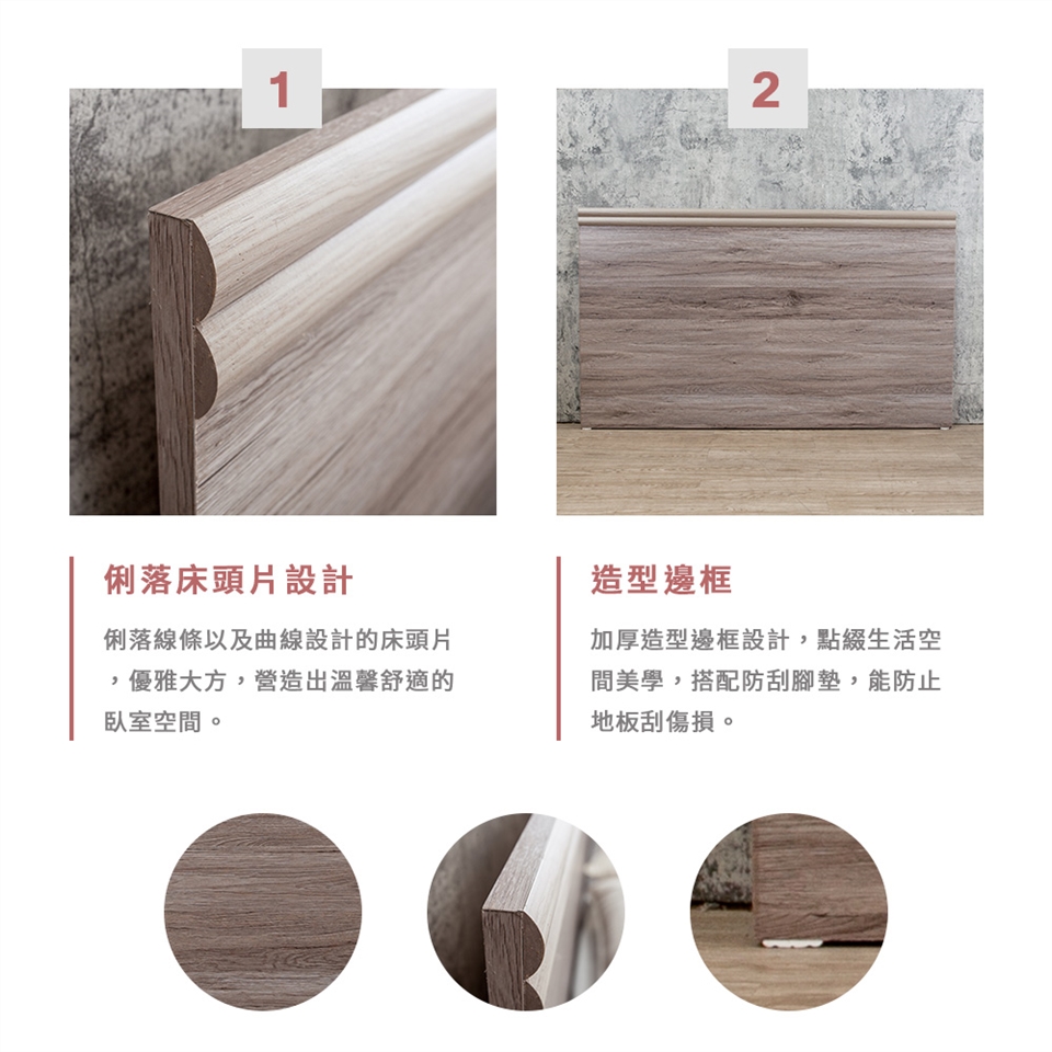 床頭片造型邊框設計,俐落線條及曲線設計,優雅大方,營造出舒適的休憩空間!