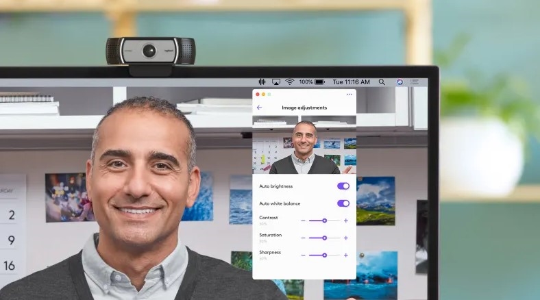 C930e 配備整合的雙全向麥克風,可清晰擷取距離一公尺外的音訊,始終提供清晰自然的通訊聲音。