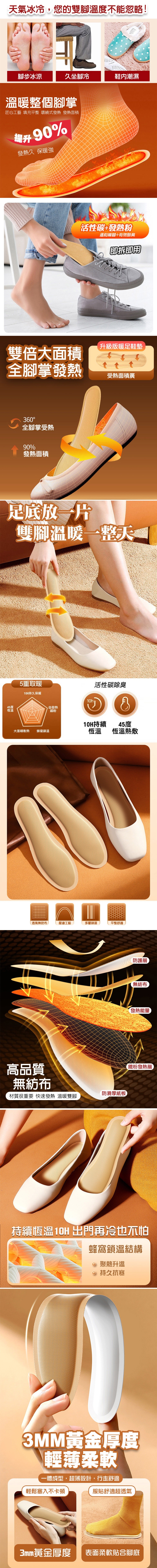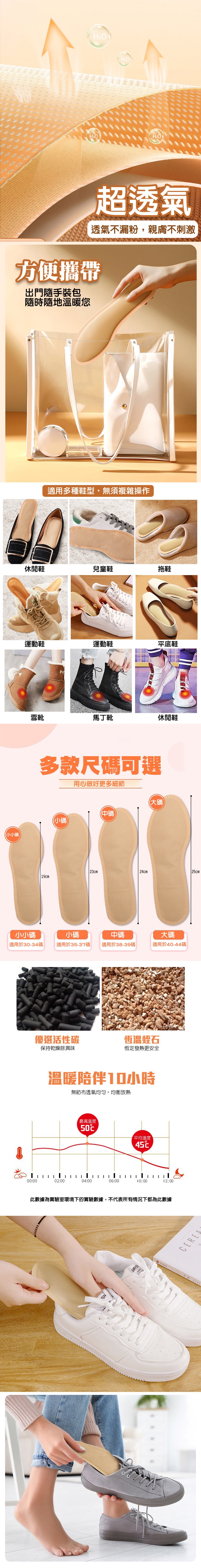 商品名稱:冬季活性炭發熱足貼暖腳鞋墊