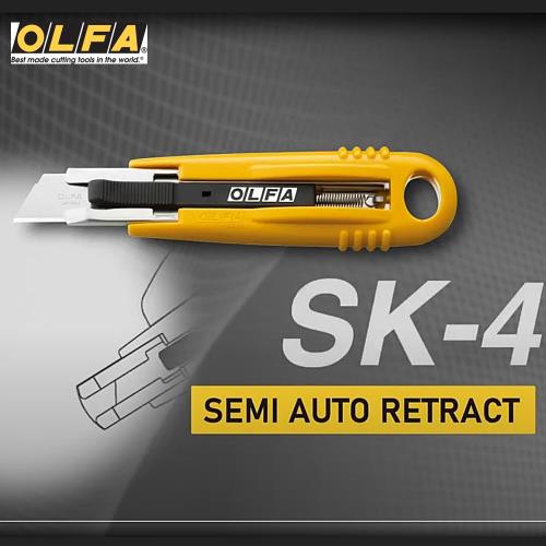 日本OLFA安全美工刀工作刀SK-4/24開箱工具刀(自動收回刀片)倉庫紙箱切割刀Auto-retracting blade Safety Knife