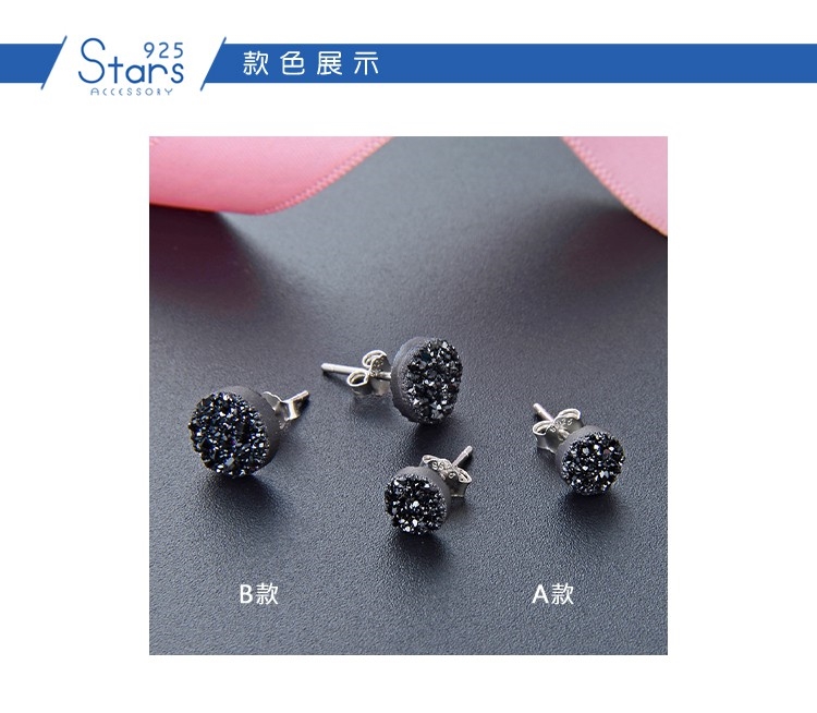 【925 STARS】純銀925潮流黑色水晶簇造型耳釘 純銀耳環 造型耳環 情人節禮物 (2款任選)