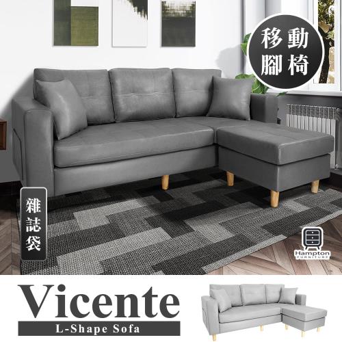 【Hampton 漢汀堡】韋森特皮面L型沙發組-耐磨皮多色可選