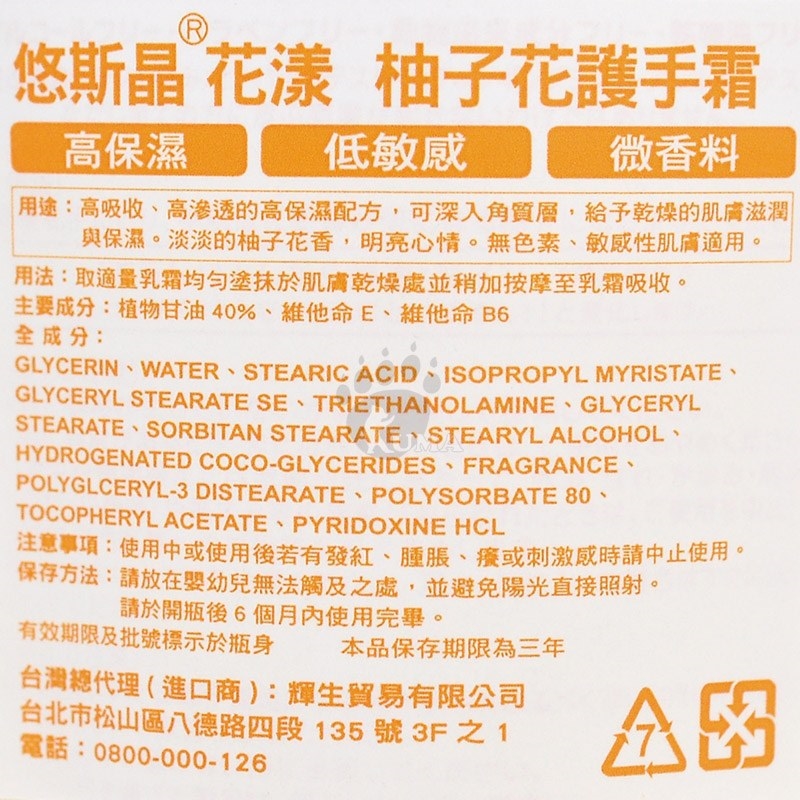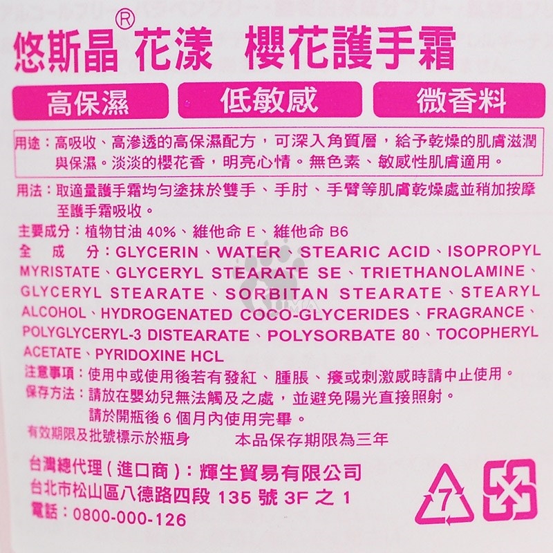 *中文品名:悠斯晶花漾護手霜 日本玫瑰/柚子花/櫻花/薰衣草