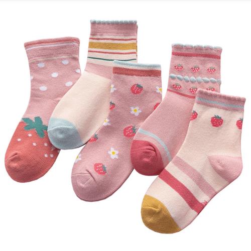 優貝選 俏皮童趣舒適學生童襪5入套組(草莓花邊)