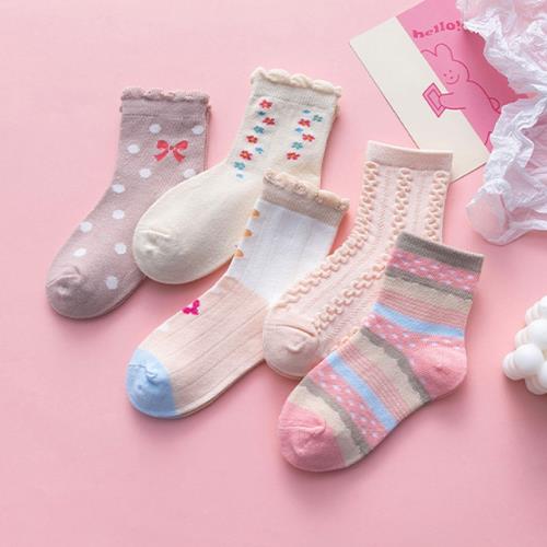 優貝選 俏皮童趣舒適學生童襪5入套組(公主麻花)