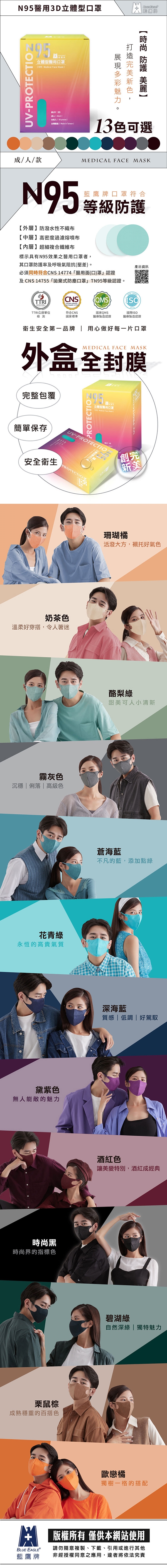 ◆核定品名:藍鷹牌N95立體型醫用口罩(未滅菌)