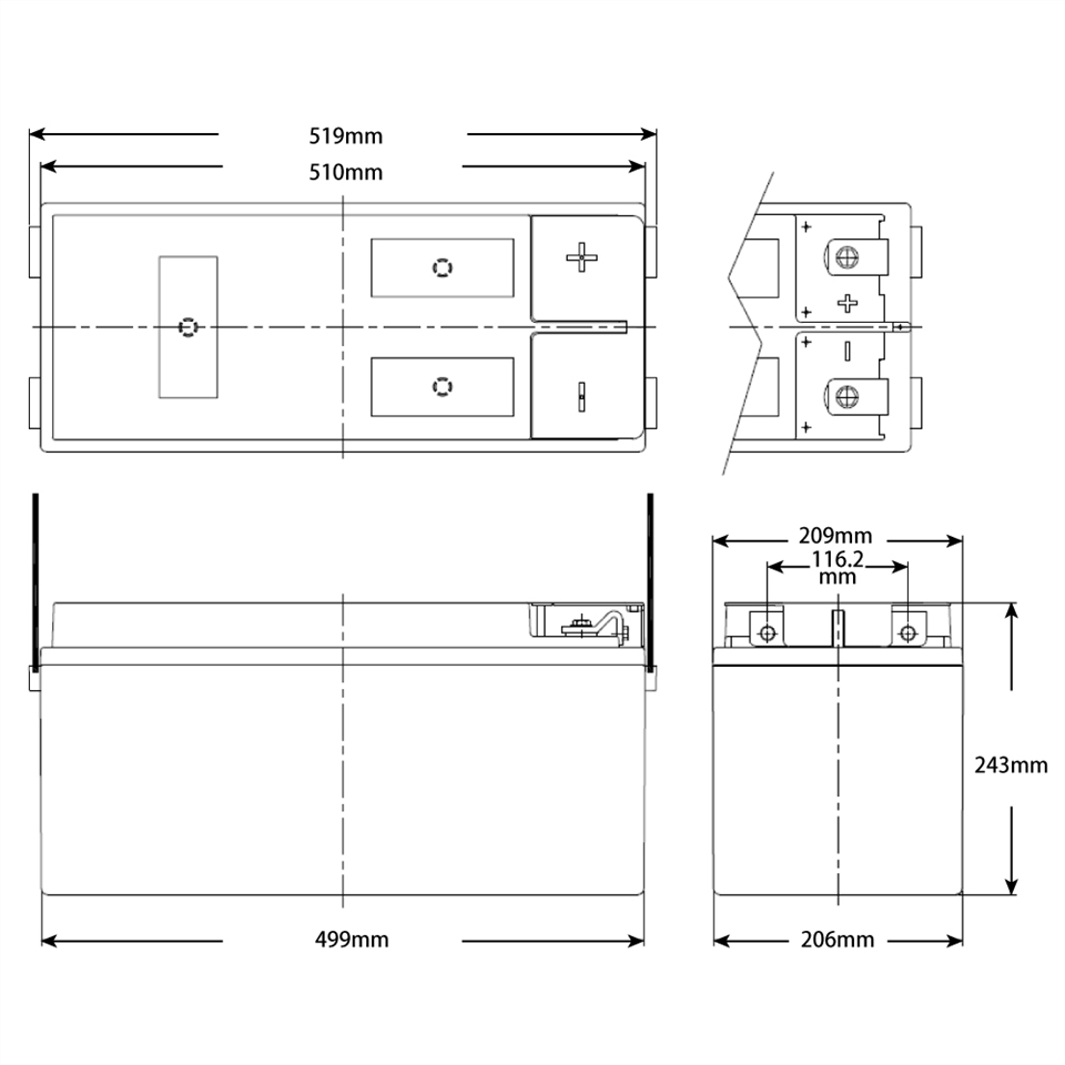 格子體(柵板)選用高導電耐腐蝕型合金鉛材質製成,搭配高密度塗膏充填之工法,大幅提昇循環壽命,特殊設計在例外深放電時也有較長的循環壽命,是值得信賴的一種高經濟性電池。
