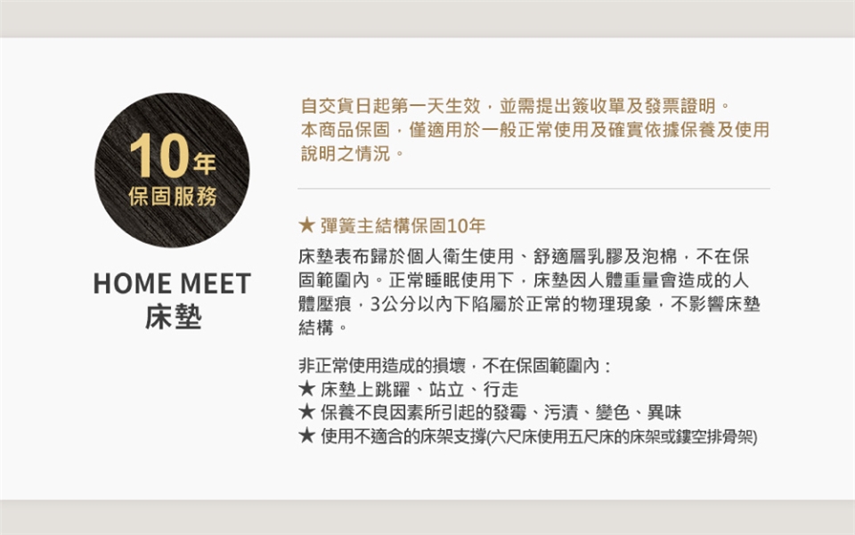 床墊若出現2.5CM的凹痕是優良床墊的現象,並非是製造上的瑕疵,此現像代表床墊可以提供您舒適的睡眠品質,要平衡這些凹衡,可定期翻轉您的床墊。