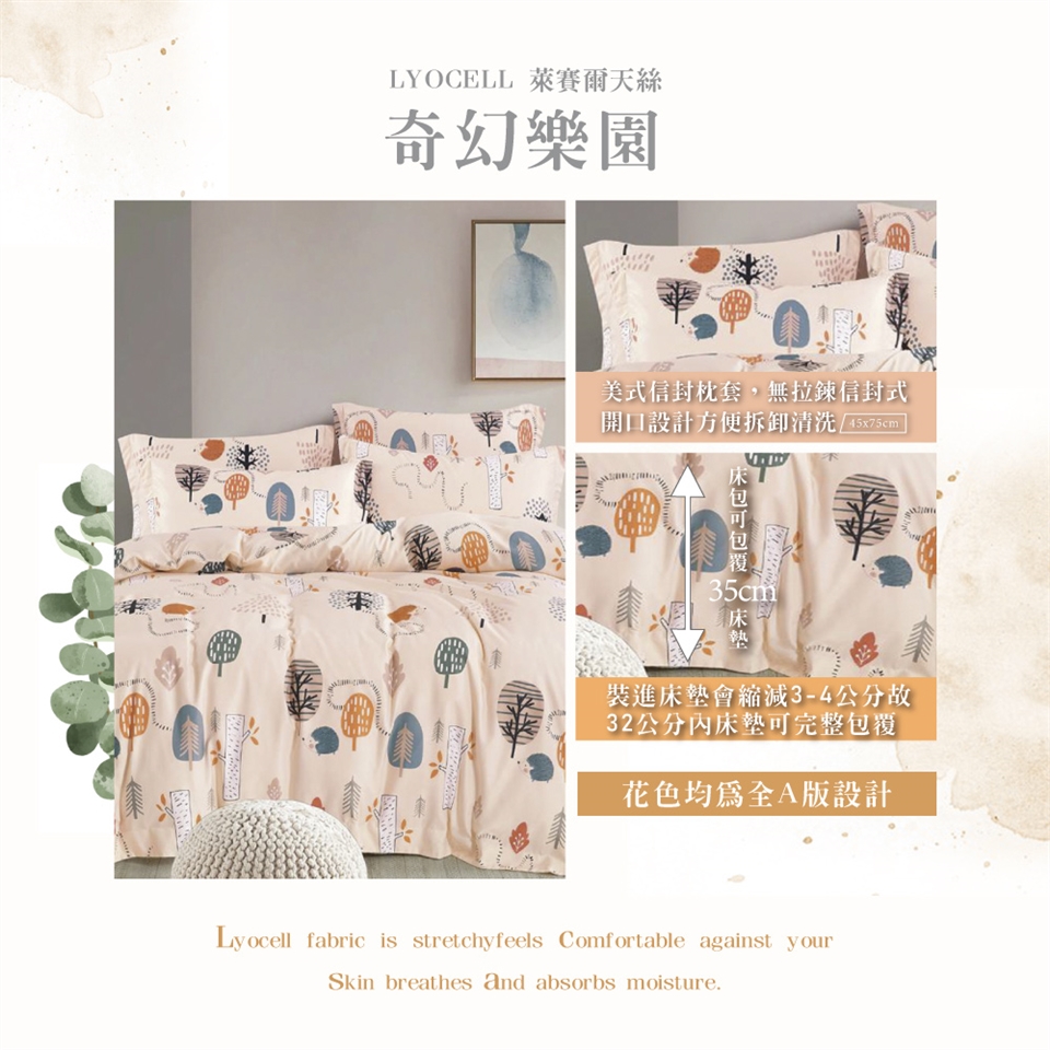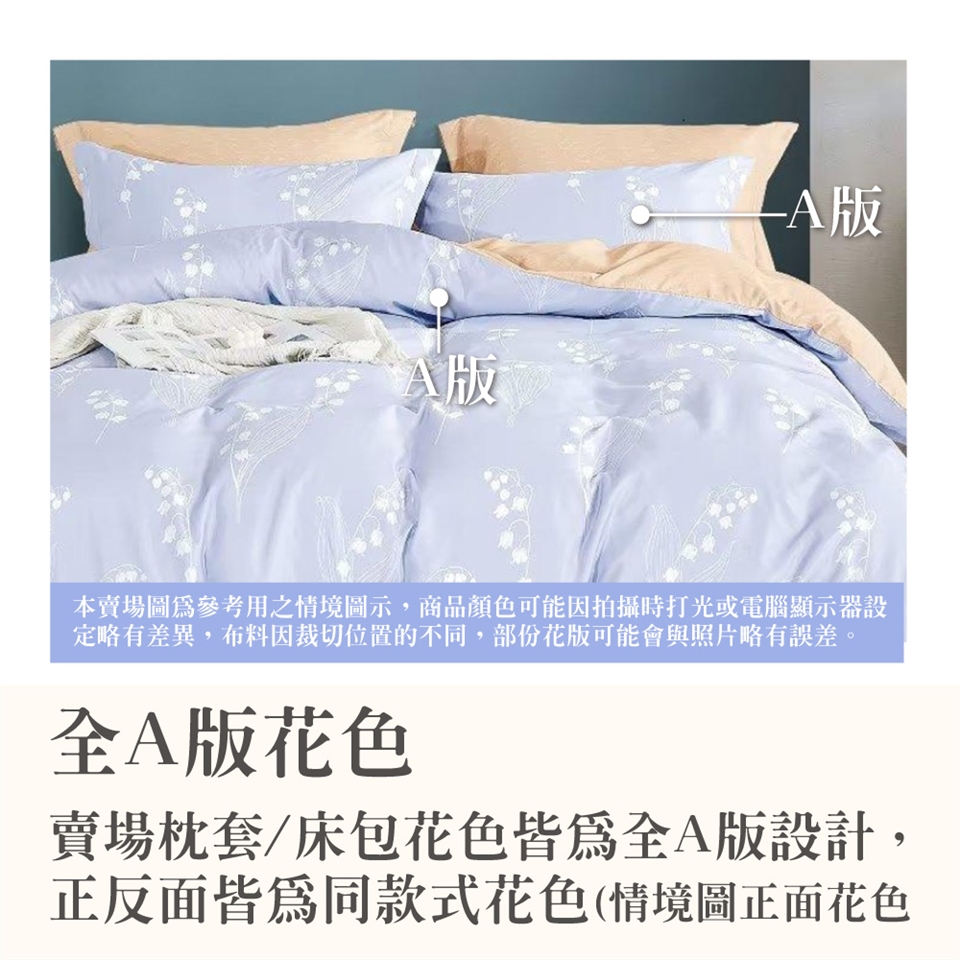 ◆ 本商品圖為參考用之情境圖示,布料因裁切位置的不同,枕頭套、床包、被套部份花版可能會與照片之情境圖有所出入,請詳看內文說明。