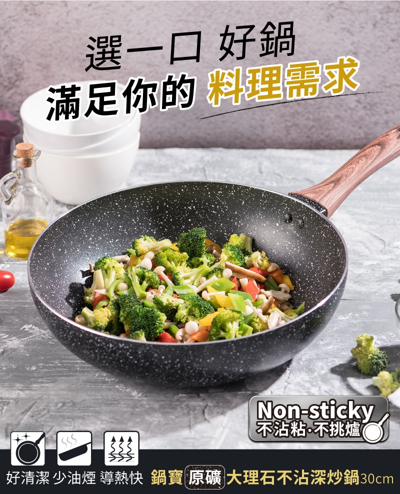 品名:鍋寶 大理石紋不沾深炒鍋