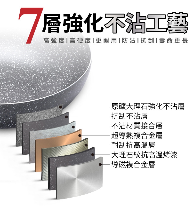 材質:鍋身、鍋面:高級合金+不沾材質(耐熱260℃)