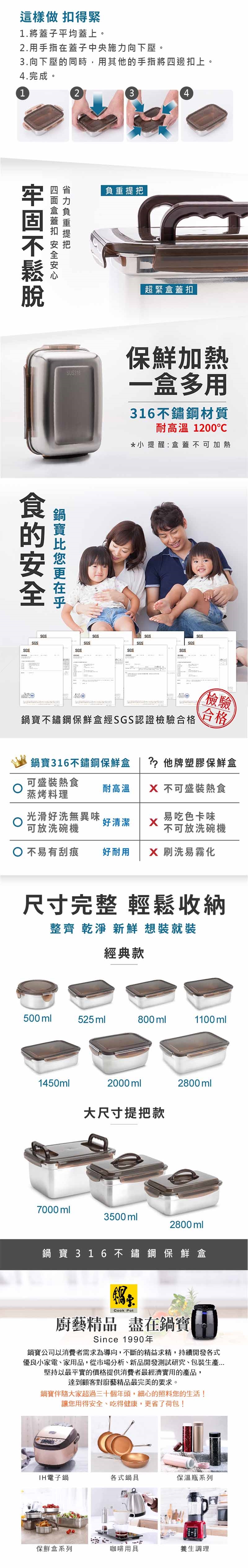 品名:【鍋寶】316不鏽鋼保鮮盒800ml