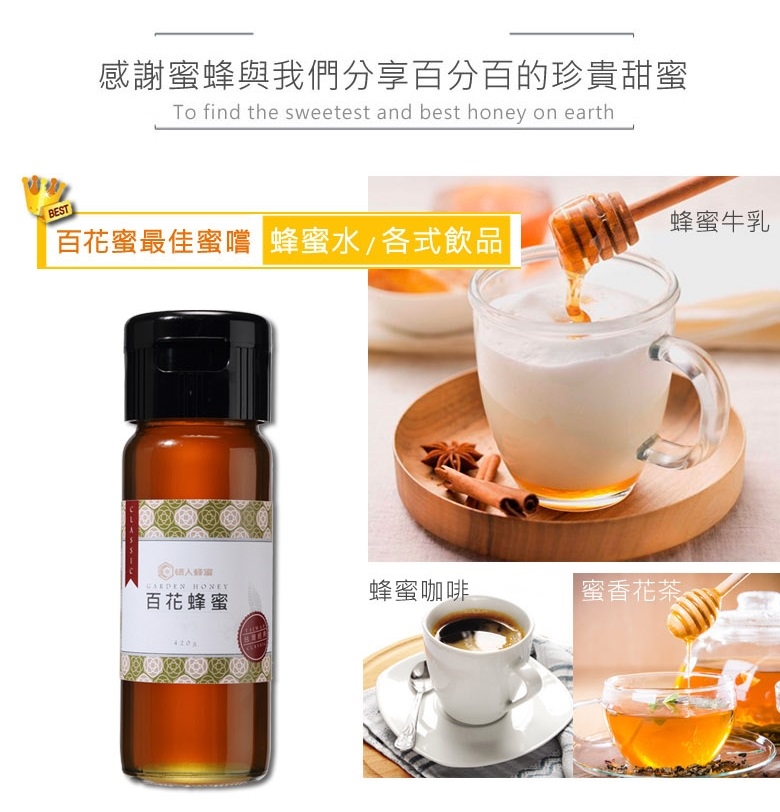 ※ 蜂蜜極適合加入牛奶、茶飲、果汁、咖啡等...飲品中,除增加飲料甜味外,可讓飲品口感更美味加分!