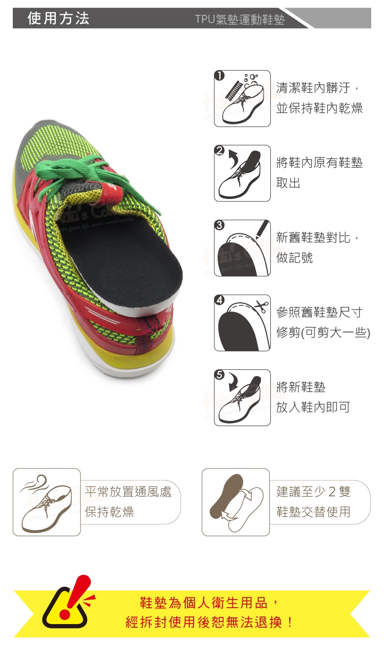 鞋墊為個人衛生用品,經拆封使用後恕無法退換!