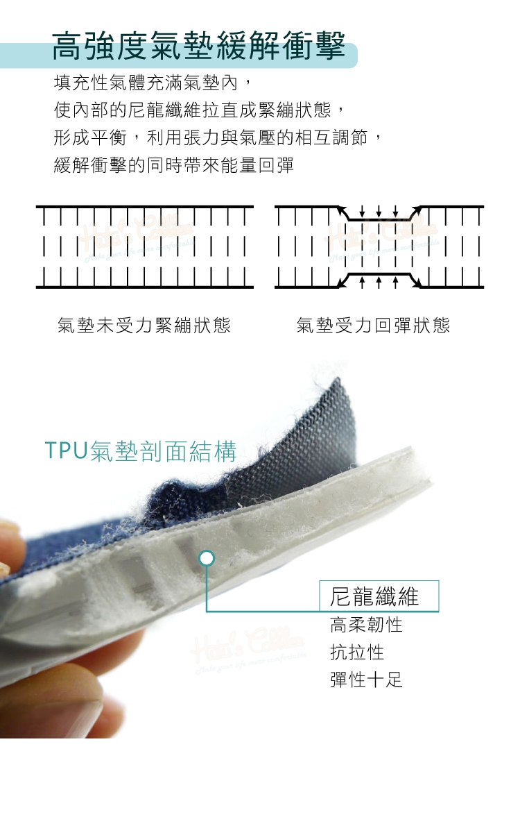 高強度氣墊緩解衝擊,
