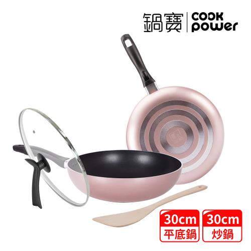 【CookPower鍋寶】金鑽不沾雙鍋四件組30CM(30炒+30煎+蓋+鏟) (兩色任選)