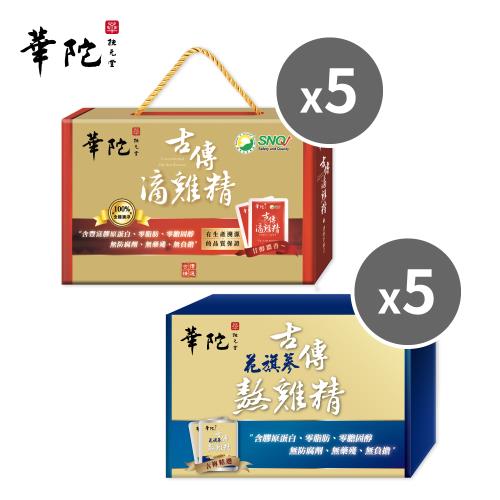 華陀扶元堂 古傳滴雞精(60ml/包;10包/盒)5盒組+花旗蔘熬雞精(60ml/包;10包/盒)5盒組