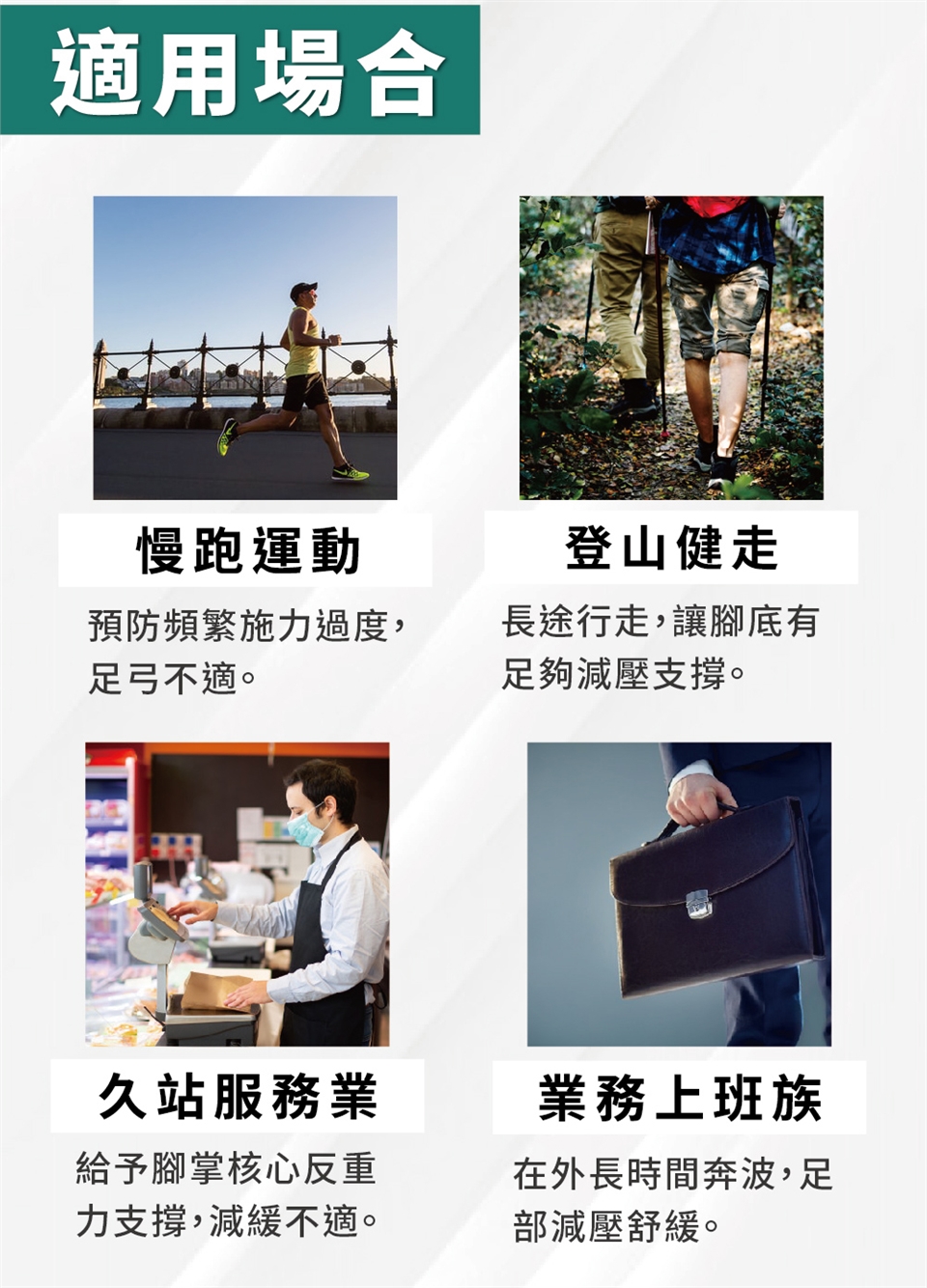 減緩足部久站就走的不適感,
