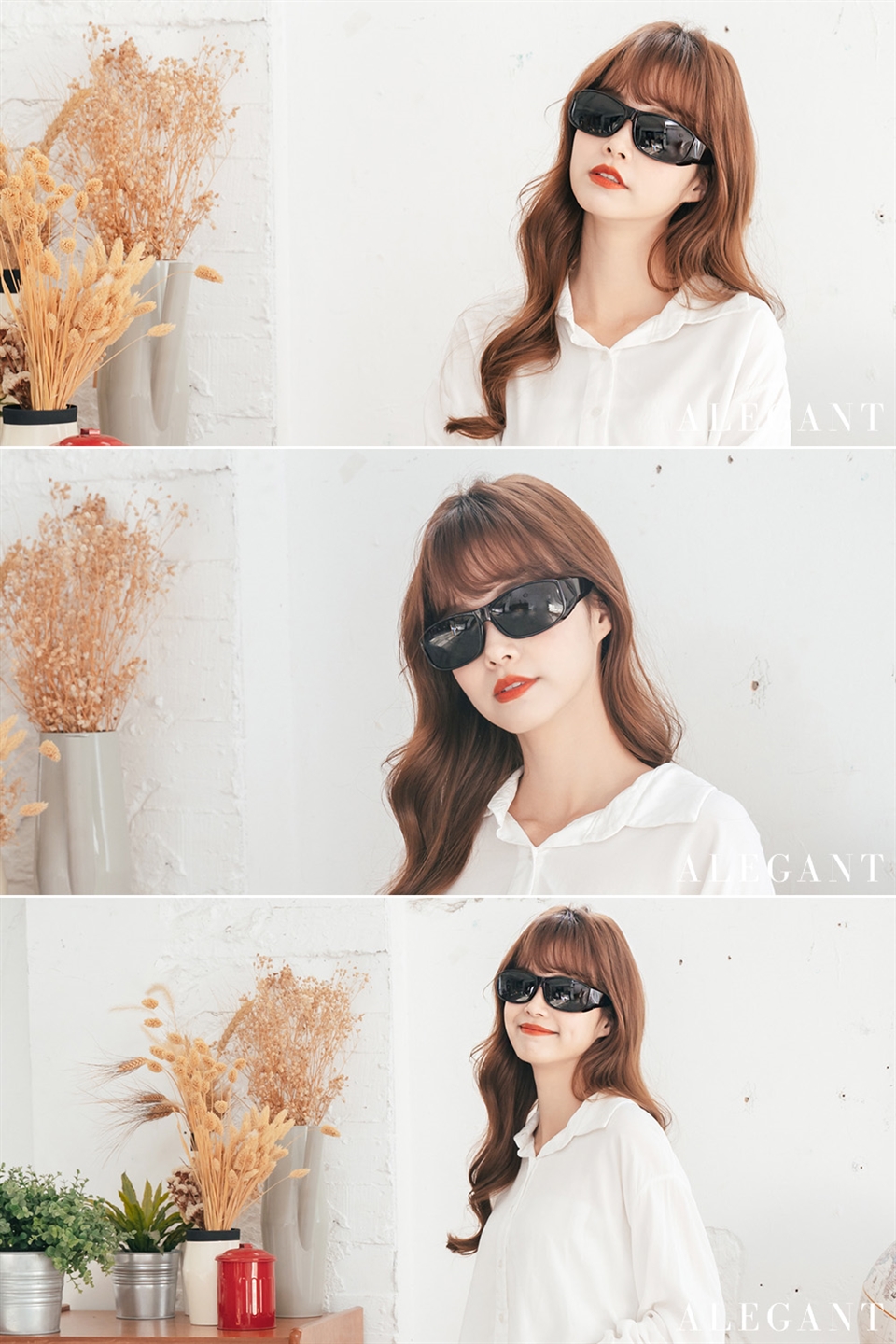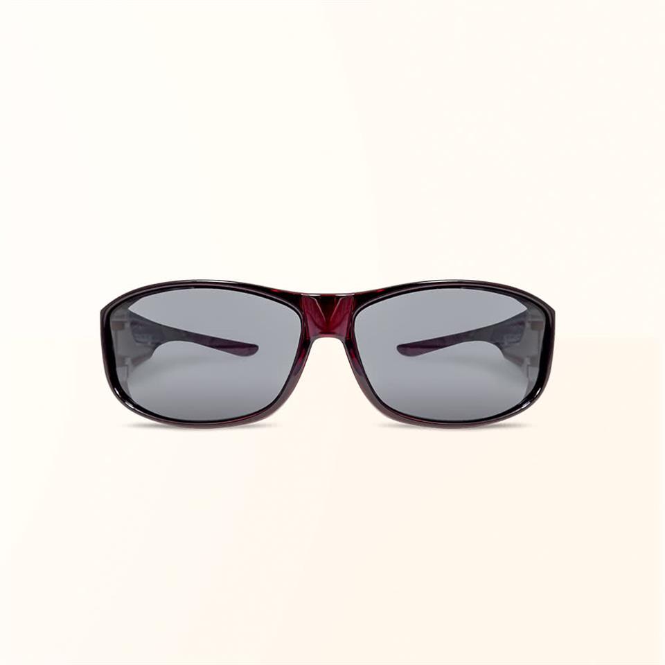勃根地酒紅配色鏡框搭配茶色鏡片,簡約大器而不失優雅