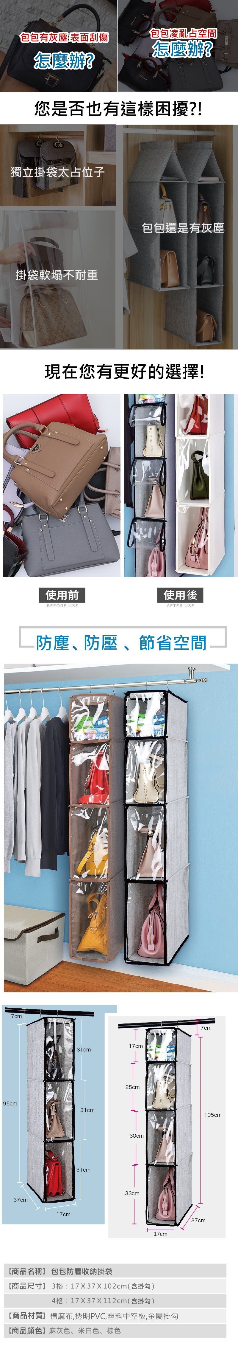 衣物包包防塵收納掛袋,包包防塵收納掛袋,優質材質,經久耐用,不易變形,電鍍掛勾,不易生鏽,承重力好,附蓋透明視窗設計,讓你的愛包不易沾附灰塵。簡單收納,找東西時也方便,讓包包不再流浪在外,告別凌亂,為你節省更多空間。