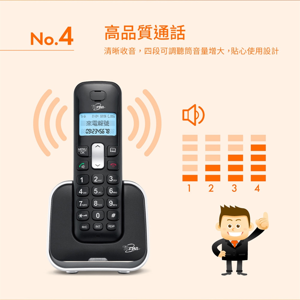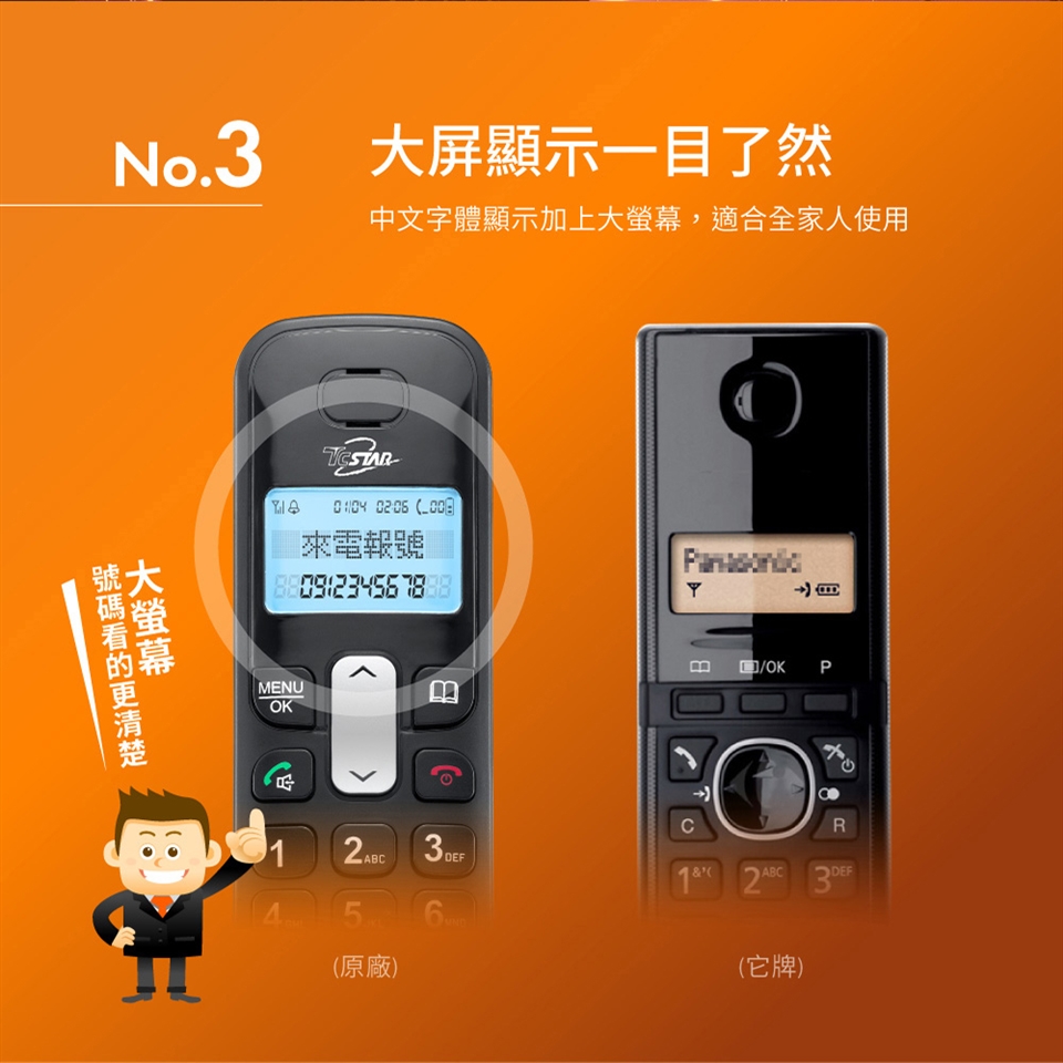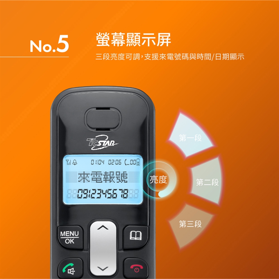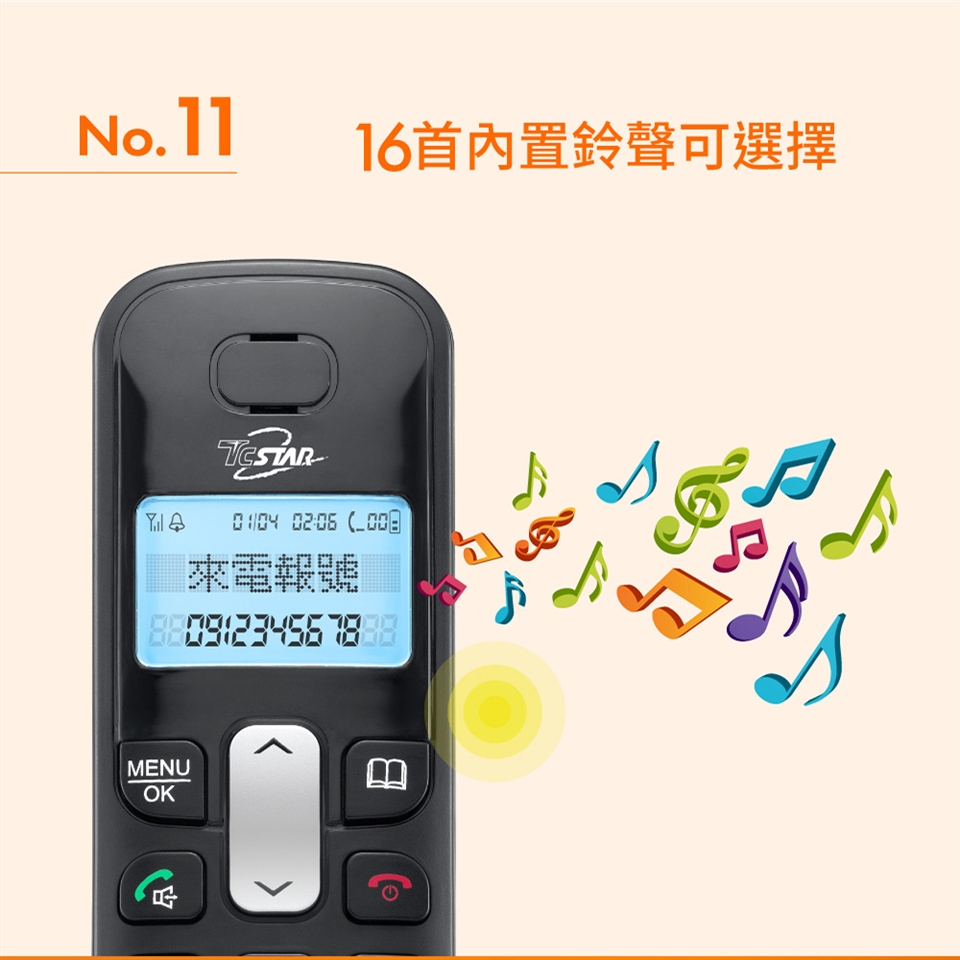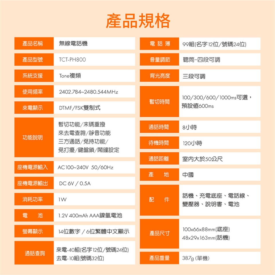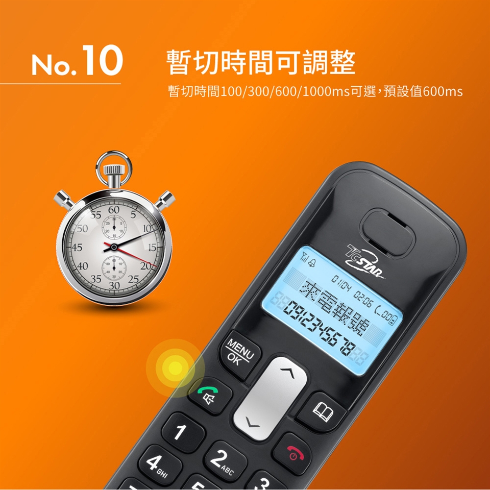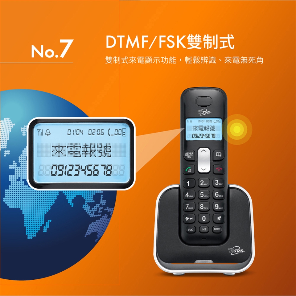 TCSTAR 2.4G雙制式來電顯示雙機無線電話 TCT-PH800BK