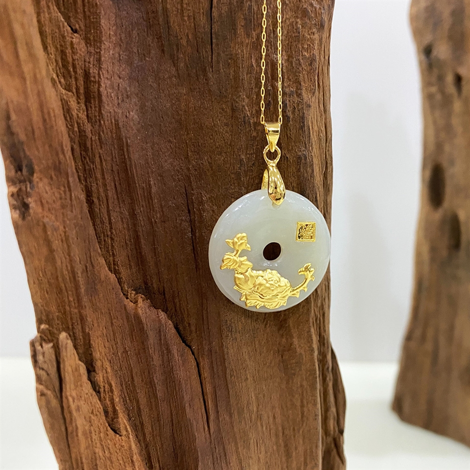 商品:東方銀合田玉鑲金花開富貴如意扣墜x1