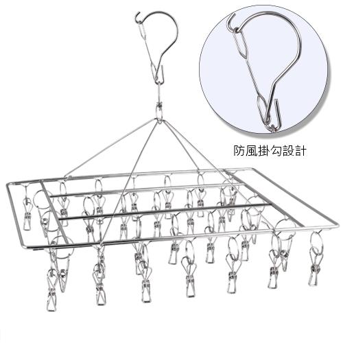 E.City_不鏽鋼防風扣長形曬衣架30夾