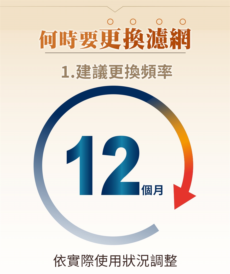 ◎建議更換頻率:每12個月更換一次,依照個人使用頻率、環境不同而定
