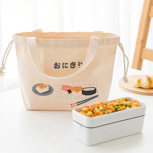 【省時好物】日式手繪和風帆布束口手提餐袋 午餐袋 便當袋
