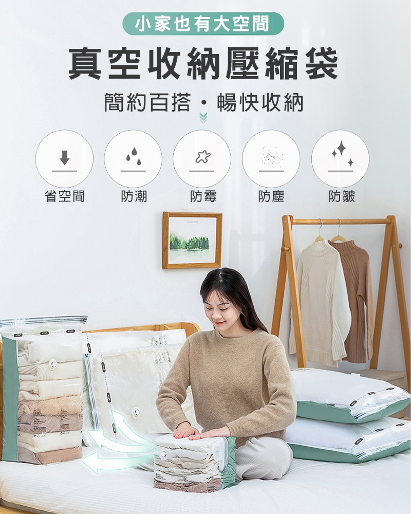 品名:黑魔法 免抽氣真空壓縮收納袋+附贈封口密封夾(特大號/組)