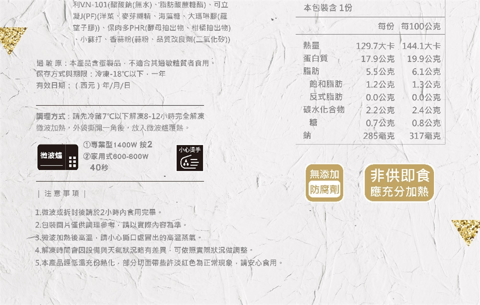 📌請勿代收:低溫冷凍宅配請勿請管理員代收,配送日當天請保持電話暢通並安排家人配合收貨,以確保品質無虞。