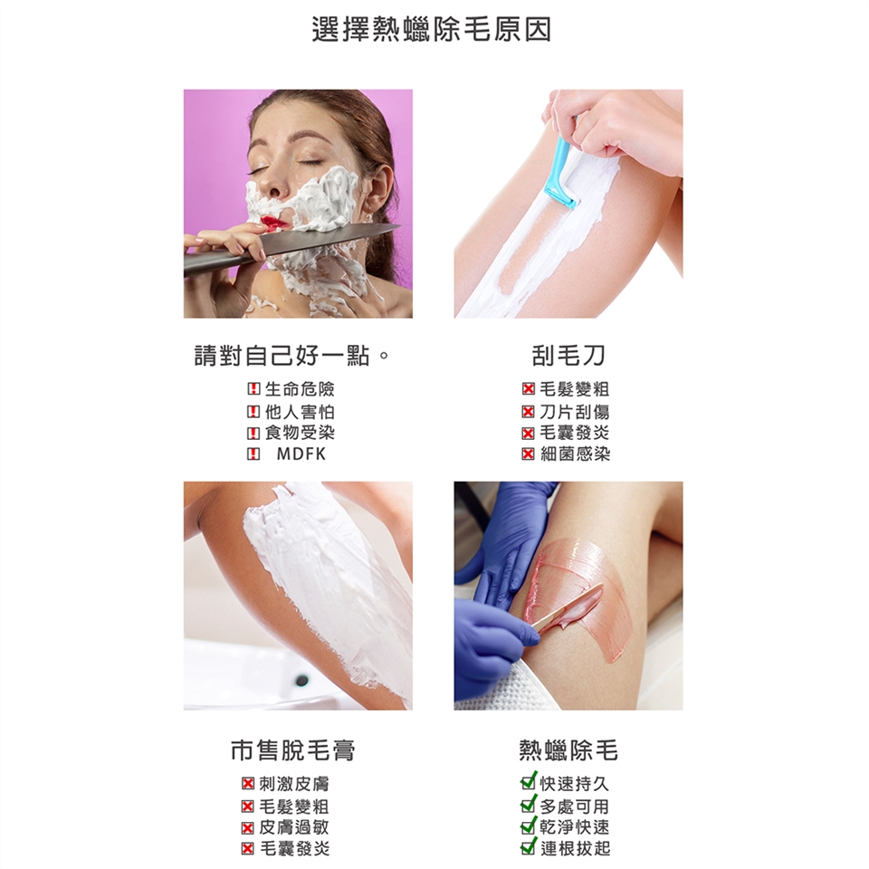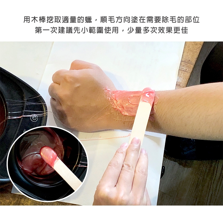 3. 請先小範圍塗上皮膚,測試熱蠟溫度