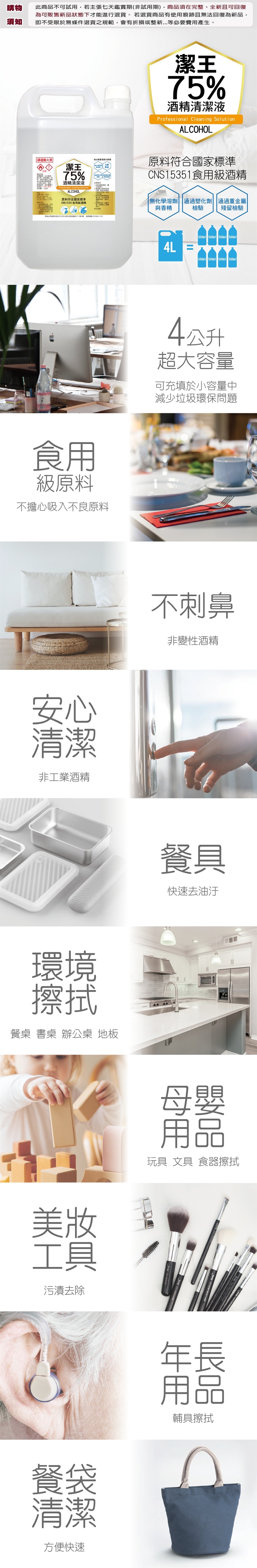 商品組合:《潔王》可噴手75%乙醇清潔酒精(家庭號),4000ml/桶,共一桶