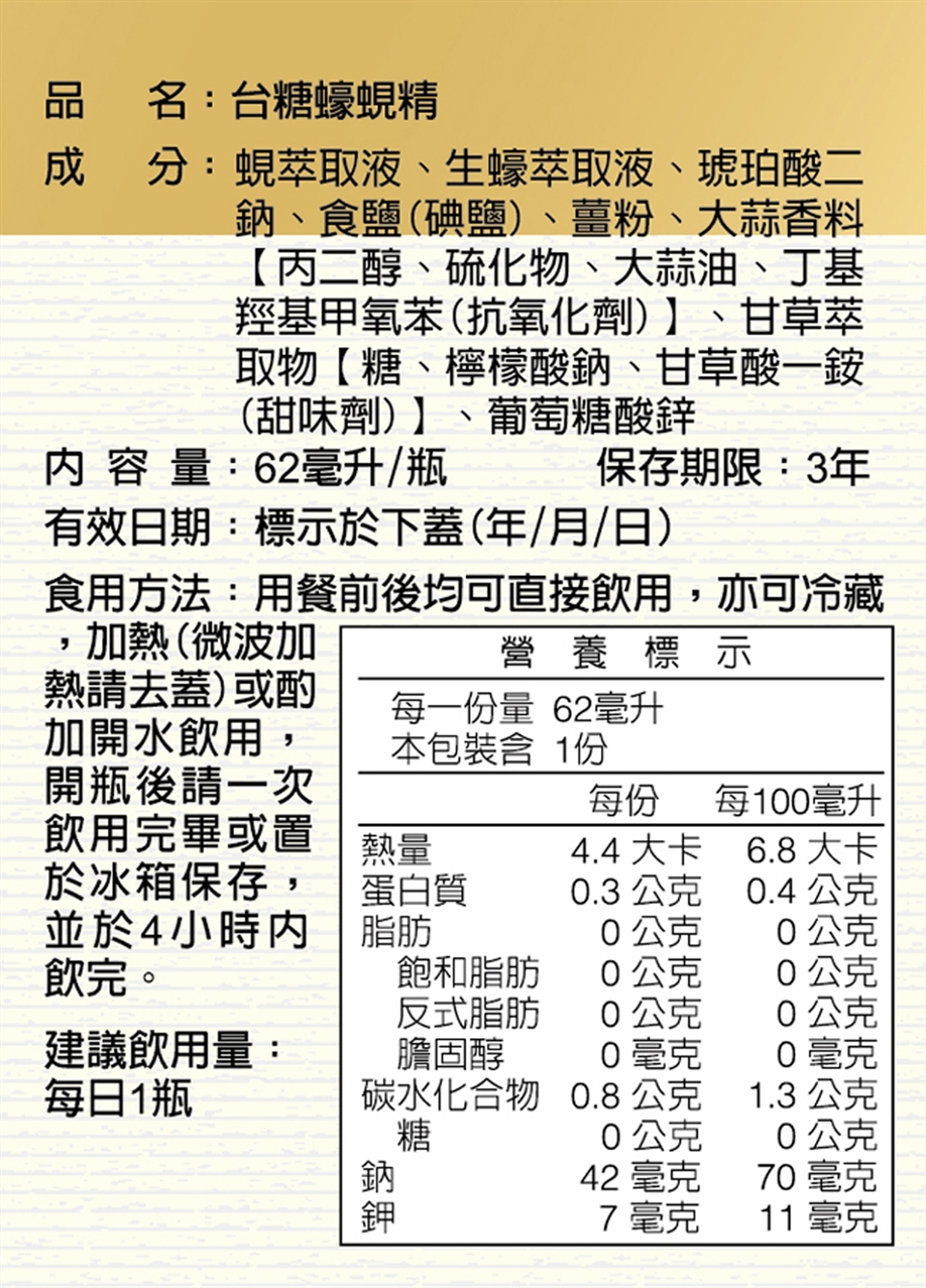 主商品:台糖 蠔蜆精(62ml)x48瓶 (無體驗)