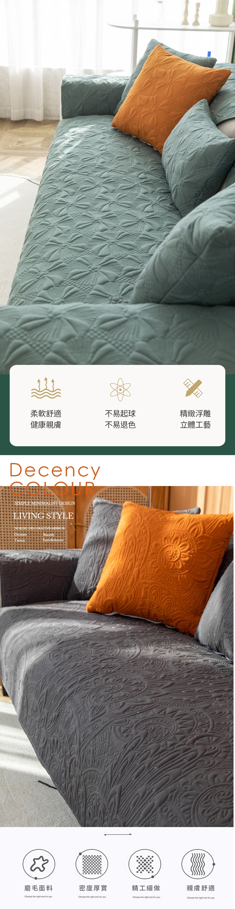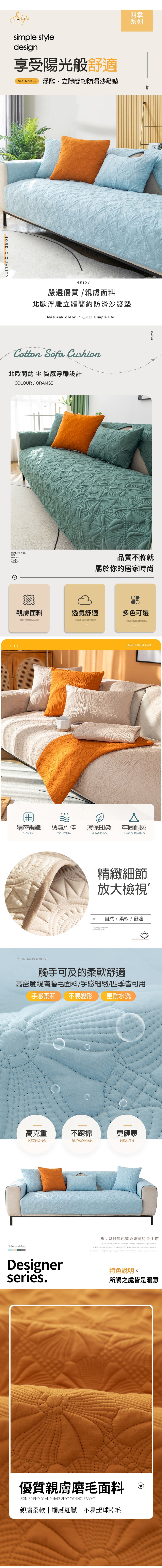 純棉優質面料,立體緹花設計簡約大方、層次感豐富,吸濕透氣四季皆宜, 居家搭配簡約質感風格!