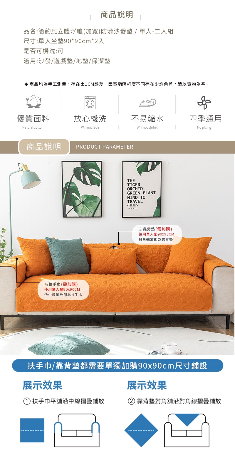 北歐立體浮雕加寬防滑沙發墊_單人坐墊 (二入)