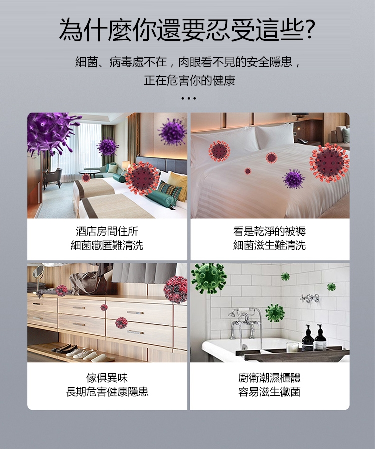 殺菌效率99%-99.9%。可以用於這室內空氣,物體表面和水以及其他液體的消毒。