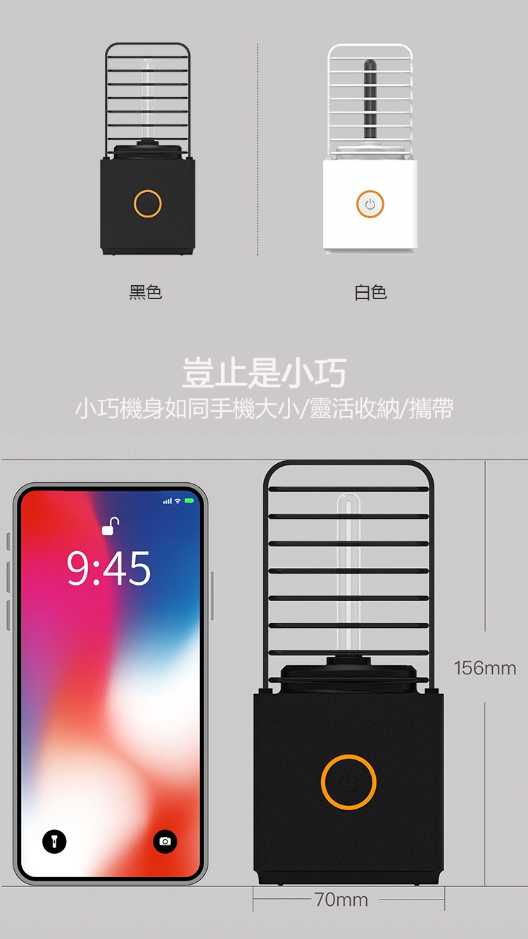 注意事項br/●本消毒燈不能在有易燃氣體或存在爆炸性粉末區域內使用。br/●這種消毒燈不適合在車庫、養殖場和類似場所使用。br/●使用前,必須將場所人員、寵物帶離現場,否則會對眼睛和皮膚造成傷害(如果傷害已經發生,請不要自行處理,請及時就醫)br/●使用時,提醒並照看好老人和兒童,切勿讓家人靠近或直視消毒燈。br/●使用時,應對字畫、高檔絲綢、皮具、貴重收藏品、有重要紀念意義物品進行遮光保護。br/●如果房間裡有化妝品、護膚品等,蓋子要蓋好,不要讓紫外線直射到。